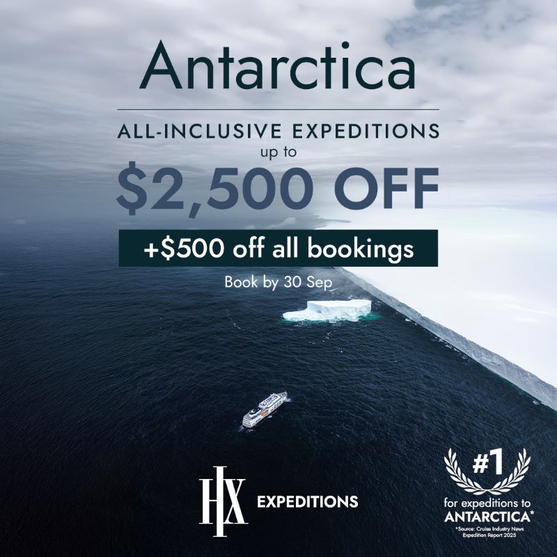 Enjoy discounts of up to $2,500 and save an extra $500 when you book by 30 September. Explore with all-inclusive expeditions to Antarctica, Greenland, Galápagos & more.